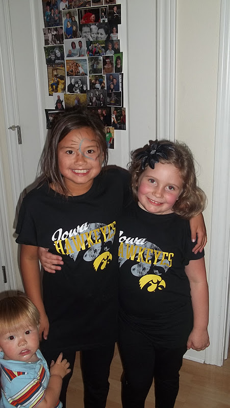 This was the day of the Iowa/Iowa State game. I found these shirts for $1.40 each on Clearance and couldn't resist buying them for the girls! Too cute!